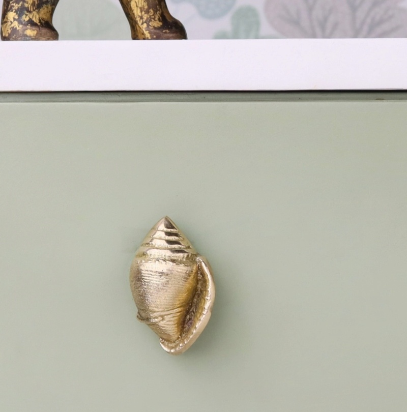 Breng een vleugje zee en strand in huis met deze prachtige kastknop in de vorm van een schelp, uitgevoerd in een warme goudkleurige messing. De realistische textuur en subtiele glans geven deze knop een elegante, natuurlijke uitstraling die perfect past bij een bohemian, coastal of vintage interieur.