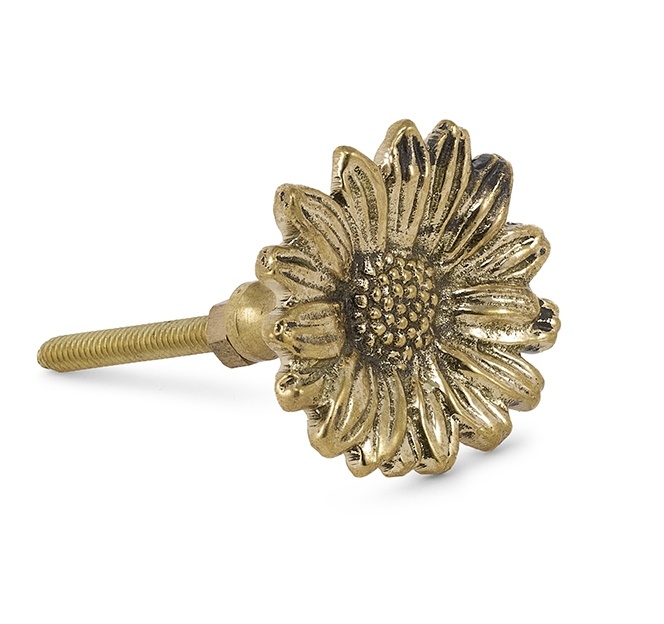 Glanzend messing kastknopje in de vorm van een madeliefje