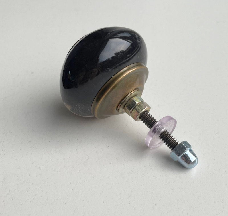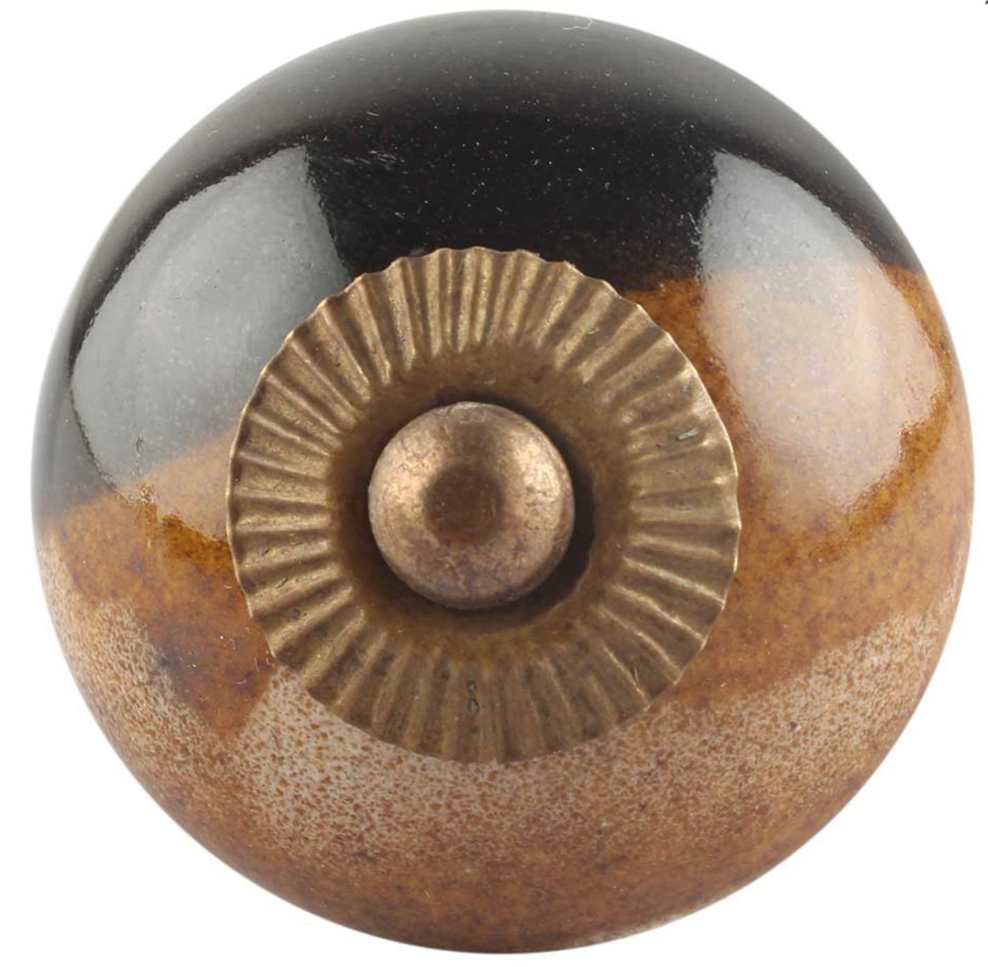 Elke kastknop heeft ander patroon glazuur: soms meer zwart, soms meer bruin, maar dat maakt de knop uniek.