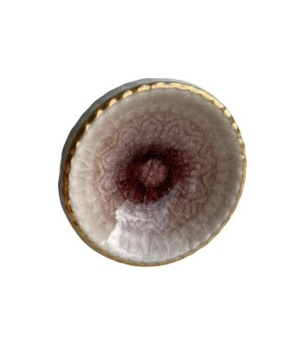 Deze kastknop is gemaakt van hoogwaardig porselein en heeft een prachtig craquelé-effect in zachte roze tinten. Het subtiele kleurverloop loopt van licht naar diep roze en wordt omlijst door een verfijnde gouden rand, wat zorgt voor een luxe en stijlvolle afwerking.