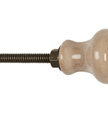 Klein en fijn klassiek kastknopje van keramiek in zand taupe kleur met een klein spikkeltje her en der.